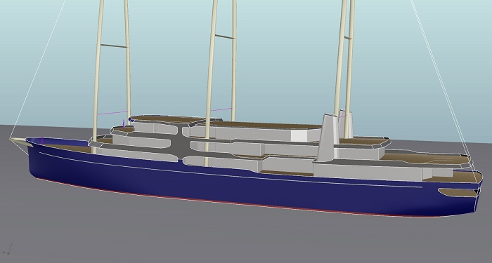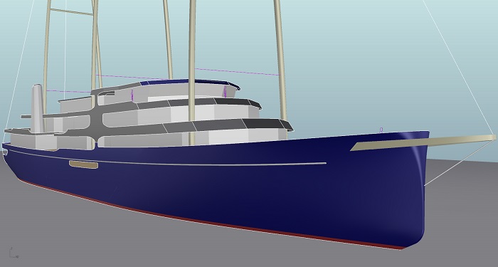A 96m Sail supported passenger schip for 128 pass./46 crew