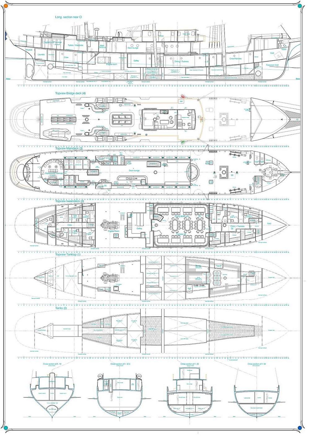 In 2008 Korner Yacht design and KHMB Y&S Design were approached by professional and experienced sailing ship owners for the design of the conversion of the 'Dana Nyborg', former Danish 'Esvagt Dana' into a three-mast topsail schooner. In this form the ship will act as a platform and regatta-ship for trainees and - on other days, as a proud sailing yacht for day passengers, possibly during great events. With her GT measurement just under 500 and the technical state she is in, it was found to be reasonably possible to convert her to SOLAS- / EU 98/18 -criteria, sailing under the Dutch flag. Nevertheless the conversion was massive and had a great impact on the interior steelwork and outfitting of the whole ship, under- as well as above deck. Three aluminium (!) masts and a steel bowsprit, together with aluminium topmasts, booms, gaffs and yards ensure a reliable sailing rig for 1600 square metres of sail. The interior is completely new build and has an honest and intimate atmosphere of a classic sailing yacht of the 1920-ties and is spacious at the same time. With her beautiful classic lines, accentuated by several new designed classic features, she definitely causes a silence, impressed audience, while sailing, and/or entering a harbour. KHMB Y&S Design is very proud to be one of the designers of this classic beauty, which is the largest topsail schooner flying the Dutch flag. We served the owner, among other things, with the following designs, drawings, calculations and support: - General Arrangement Plan (from first sketch to the as built- and approved plan) - Sail plan (from first sketch to the as built- and approved plan) - Lines plan - Class related drawings, such as Structural Fire protection plan, Fire- and Safetyplan etc - General Construction plan and Mainframe - All working drawings for steelwork under- and on deck - All working drawings for the aluminium masts and spars as also for the steel bowsprit - All necessary weight calculations. Check on GT tonnage measurement - Communication and correspondence with all subcontractors and Flag state administration (IVW)