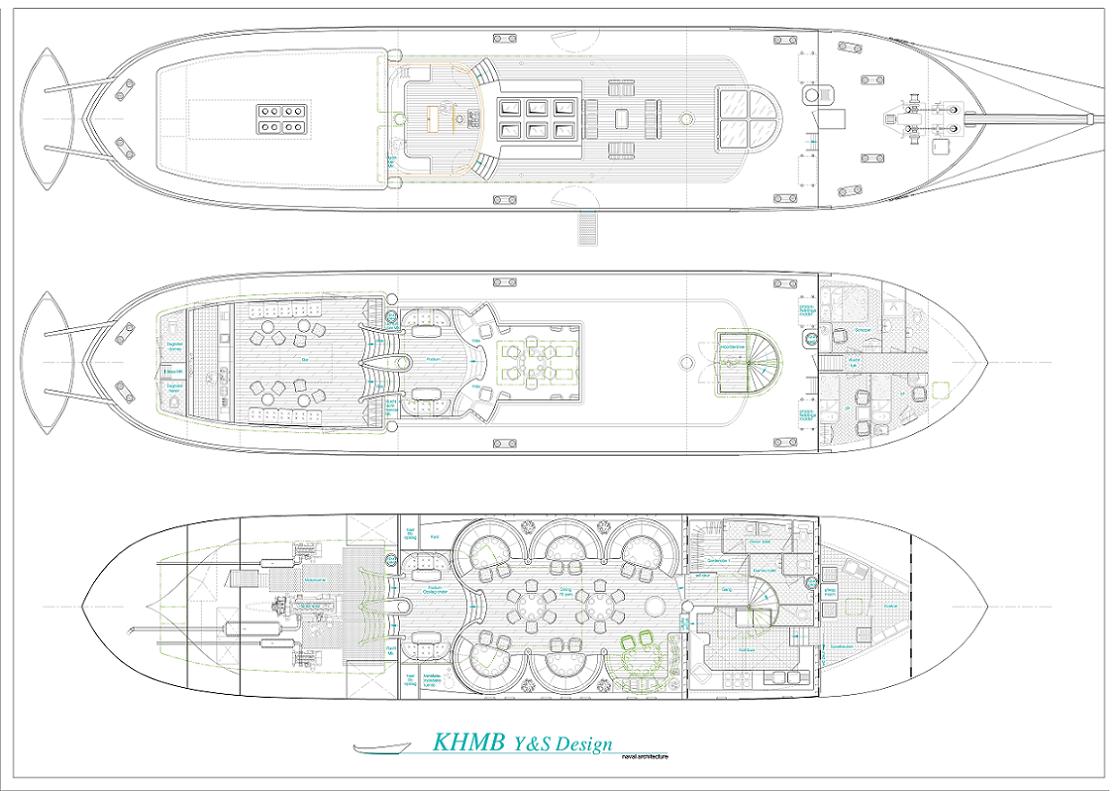 - 2D- and 3D Concepts and designs for new-builds and conversions. A direct translation from owner's wishes into a realistic plan up to an agreed grade of detailing, consisting of- or followed by a General Arrangement Plan and other specifications